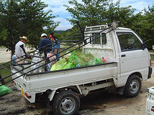 | 作業完了。軽トラに乗っているのは ほんの一部の回収ゴミです。 粗大ゴミの不法投棄が目立っています。 |